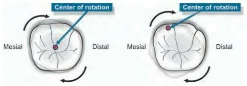 Bất cứ khi nào một lực được đặt vào răng không đi qua tâm cản thì sẽ tạo một moment lên răng, tâm cản sẽ di chuyển tịnh tiến nếu lực đi qua nó, nhưng răng cũng sẽ xoay do lực tạo một moment cách tâm cản. Kết quả này bao gồm sự kết hợp giữa chuyển động tịnh tiến và chuyển động xoay