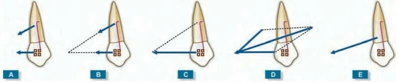 Về mặt lý thuyết, một lực đơn cộng với một cặp lực có thể tạo ra bất cứ chuyển động nào. Điều này nghe có thể đơn giản nhưng cực kỳ khó thực hiện trên lâm sàng. Để tạo một chuyển động tịnh tiến thôi, hệ thống lực trên mắc cài phải bằng một lực mà không có cặp lực nào tại tâm cản.