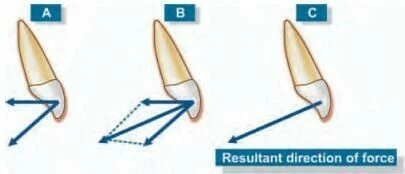 Răng di chuyển do một lực đặt lên mắc cài tùy thuộc vào khoảng cách giữa đường lực tác động từ tâm cản. Lực giống nhau đặt lên các răng có chiều dài chân răng khác nhau hoặc các mắc cài gắn ở những chiều cao khác nhau thì có những tác động khác nhau. Ngoài ra, chuyển động của răng ở người trưởng thành có tiêu xương ổ răng sẽ khác với ở thanh thiếu thiên.