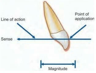 Lực có thể biểu diễn bằng vector. Chúng có độ lớn và hướng. Ngoài ra, điểm đặt lực cũng rất quan trọng trong chỉnh nha. Độ lớn và hướng của lực có thể biểu diễn bằng vector. Điểm đặt lực là nơi xuất phát của mũi tên, chẳng hạn như ở mắc cài, đây đơn giản là điểm tiếp xúc giữa vật thể bị di chuyển và lực tác động. Hướng của lực được biểu diễn bằng mũi tên và đầu của mũi tên, nếu như không có mũi tên, thì đường thẳng biểu diễn đường tác động. Chiều của lực được xác định ở vị trí cuối của mũi tên.