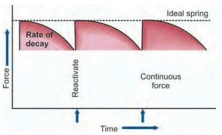 Dưới điều kiện lâm sàng, cần phải nhớ rằng bất cứ cơ chế nào thì lực đều có khuynh hướng giảm theo thời gian. Với sự di chuyển răng trong chỉnh nha, nên duy trì lực cao hơn mức tới hạn. Nếu mức độ lực giảm dưới mức tới hạn này, chuyển động do lực sinh ra bị mất cho đến khi lực được kích hoạt trở lại. Dựa vào thời gian áp dụng, lực được chia làm ba loại: