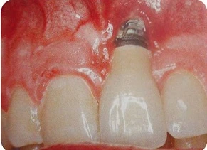 Răng cửa dưới cắn đụng vào cổ răng cửa trên gây chấn thương nướu và gây tiêu xương vùng này. Do đó, không thể chỉ điều trị nha chu đơn thuần mà phải điều trị kết hợp nha chu và chỉnh hình.