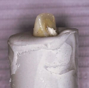 Phục hình tạm gắn với bản sao implant được vùi vào trong khối thạch cao.