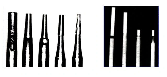 – Mũi khoan thép, có loại hình nón trụ dài và ngắn, có loại mũi khoan tròn số 4. Để loại bỏ mùn ngà ở phía sâu, có loại mũi khoan tròn số 6 dùng cho tay khoan tốc độ chậm.