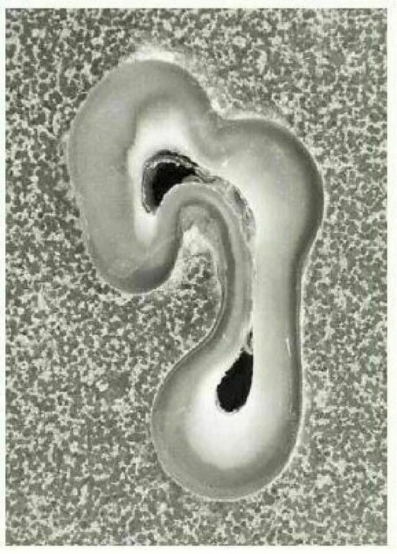 Hình 7-10. Hình ảnh cắt ngang chân răng ở răng cối nhỏ cho thấy hệ thống ống tủy có dạng hình dải ruy băng.