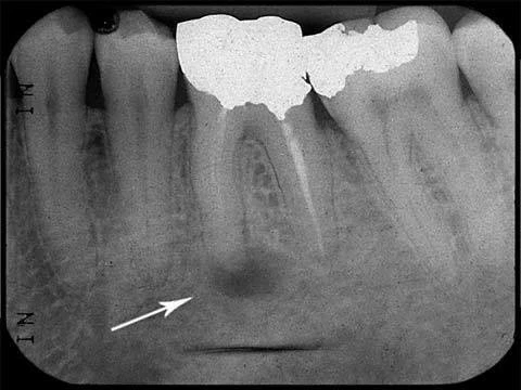 5. Tuỷ hoại tửKhi tuỷ răng bị hoại tử (hoặc tuỷ răng không còn sống), không còn sự cung cấp máu đến tuỷ răng và dây thần kinh tuỷ không thực hiện chức năng. Phân loại lâm sàng này nhằm mô tả tình trạng mô học của tuỷ răng. Tình trạng này theo sau tình trạng viêm tuỷ không có khả năng hồi phục có triệu chứng hoặc không có triệu chứng. Sau khi tuỷ răng hoại tử hoàn toàn, răng sẽ không có biểu hiện gì cho đến khi các triệu chứng xuất hiện trở lại do bệnh lý tiến triển đến vùng mô quanh chóp. Khi tuỷ răng hoại tử, răng sẽ không đáp ứng với thử nghiệm điện hoặc kích thích lạnh. Tuy nhiên, nếu đặt nhiệt vào răng trong một khoảng thời gian đủ lâu, răng có thể đáp ứng với kích thích. Đáp ứng này có thể liên quan đến chất lỏng hoặc khí còn lại trong ống tuỷ, chúng giãn nở và tác động vào vùng mô quanh chóp. Như được thảo luận từ trước, chấn thương răng cũng có thể làm răng không đáp ứng với các thử nghiệm tuỷ và bắt chước những triệu chứng của tuỷ hoại tử, do đó, bắt buộc phải khai thác bệnh sử nha khoa kỹ lưỡng.