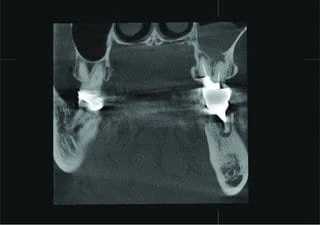 The patient presented with an unclear situation around tooth 26, which had undergone endodontic treatment before. Conventional 2D X-rays did not allow a conclusive diagnosis; therefore, a 3D scan was performed with Veraviewepocs 3D R100. The sagittal and coronal view showed that the endodontic treatment had not been successful and that there were apical defects on the buccal and palatal root.