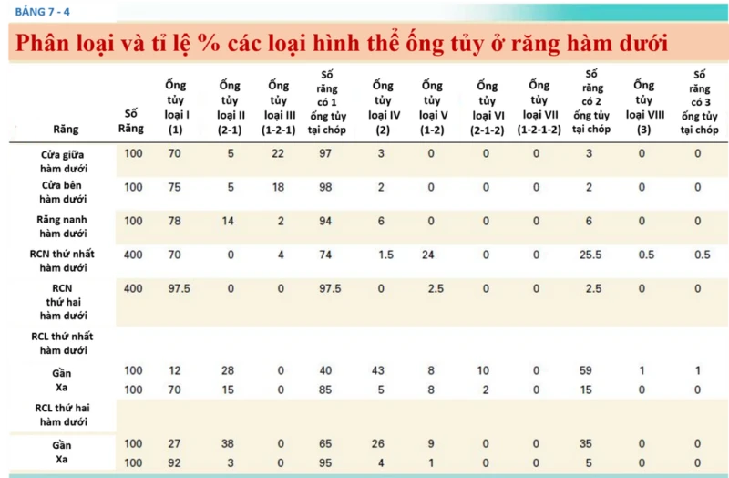 Các biến thể này bao gồm ba ống tủy