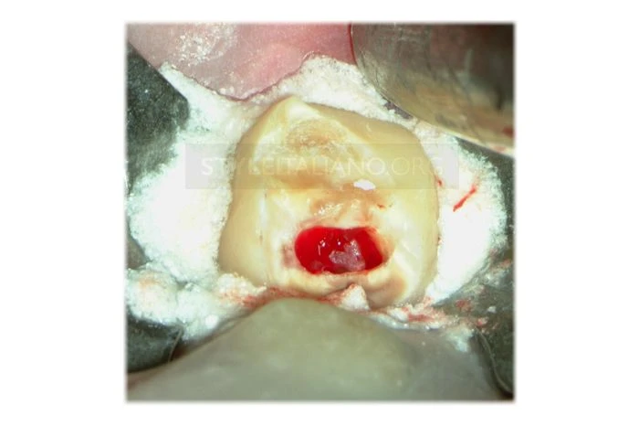 Khi thử nghiệm thì thấy răng đáp ứng với kích thích nhiệt và cơ học, mở buồng tủy chúng ta thấy chảy máu. Thời điểm này, ta có thể nghi ngờ nguồn gốc của tổn thương, nghĩ rằng nó có thể xuất phát từ nha chu chứ không phải nội nha.
