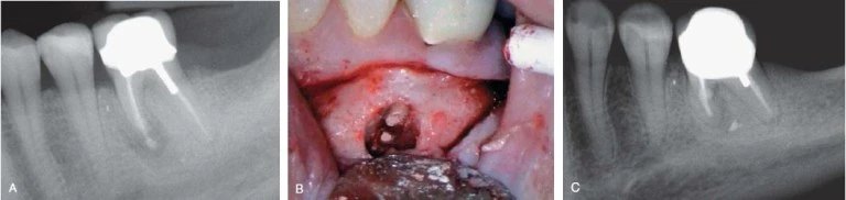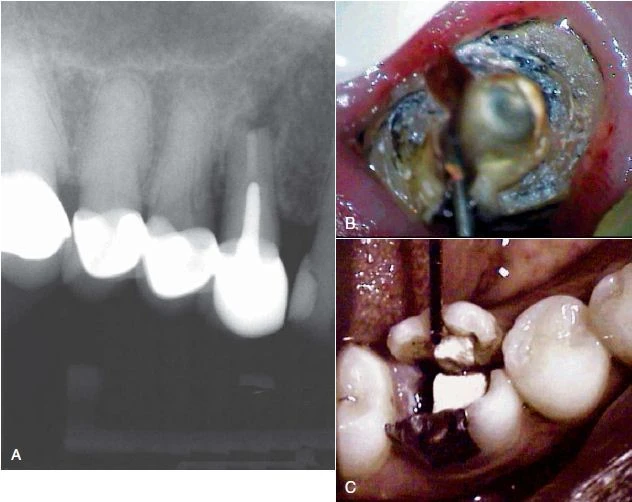 Hình 8. Khi nghi ngờ nứt dọc chân răng, đôi lúc phải lật vạt để quan sát tốt hơn.