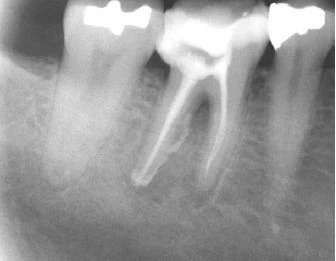 Hình 3. Nhiễm trùng tuỷ răng tái phát sau điều trị nội nha có thể là do nứt dọc chân răng