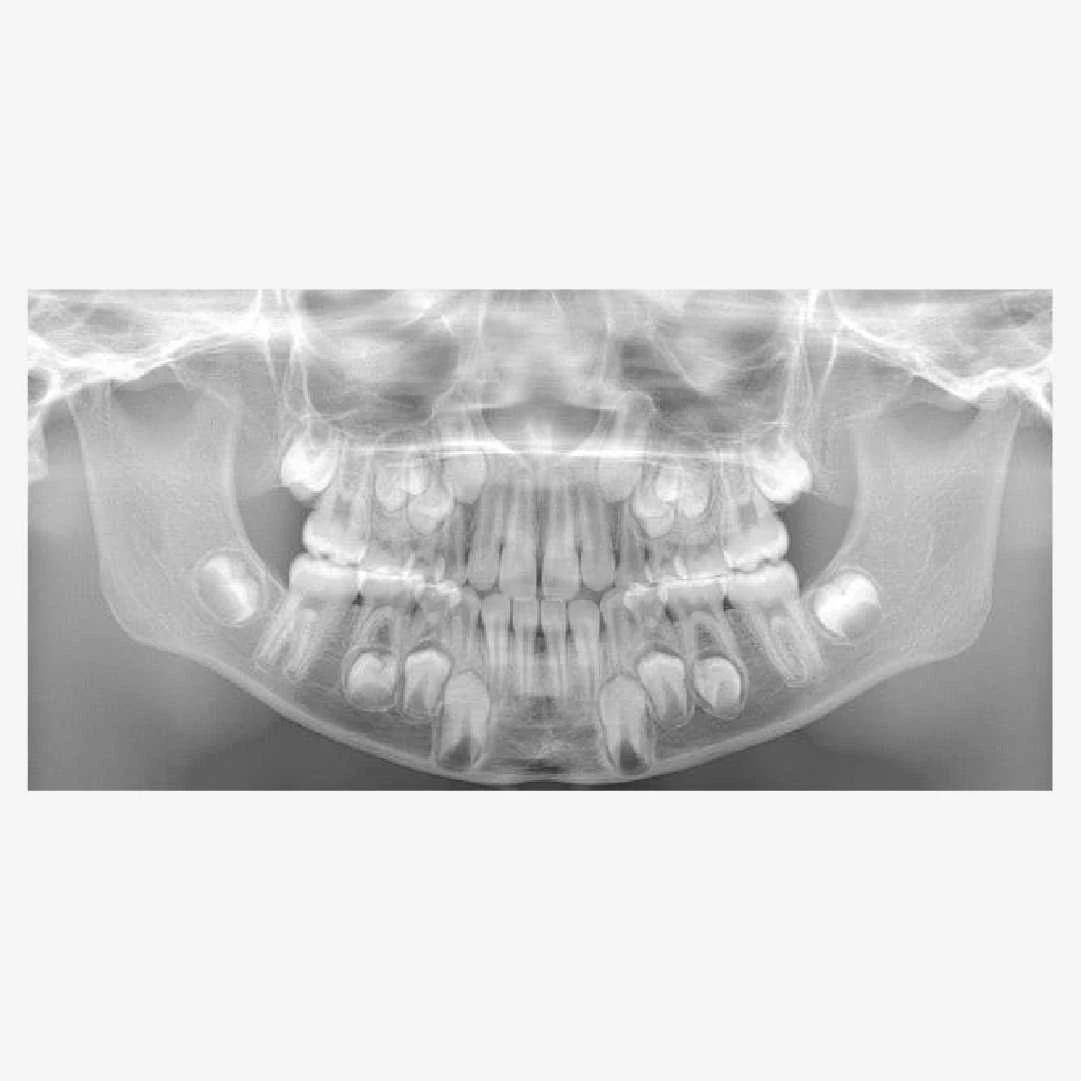 Toàn cảnh nhi khoa: Đối với trẻ em có hàm nhỏ hơn, phạm vi tiếp xúc hẹp hơn để giảm liều tia X.