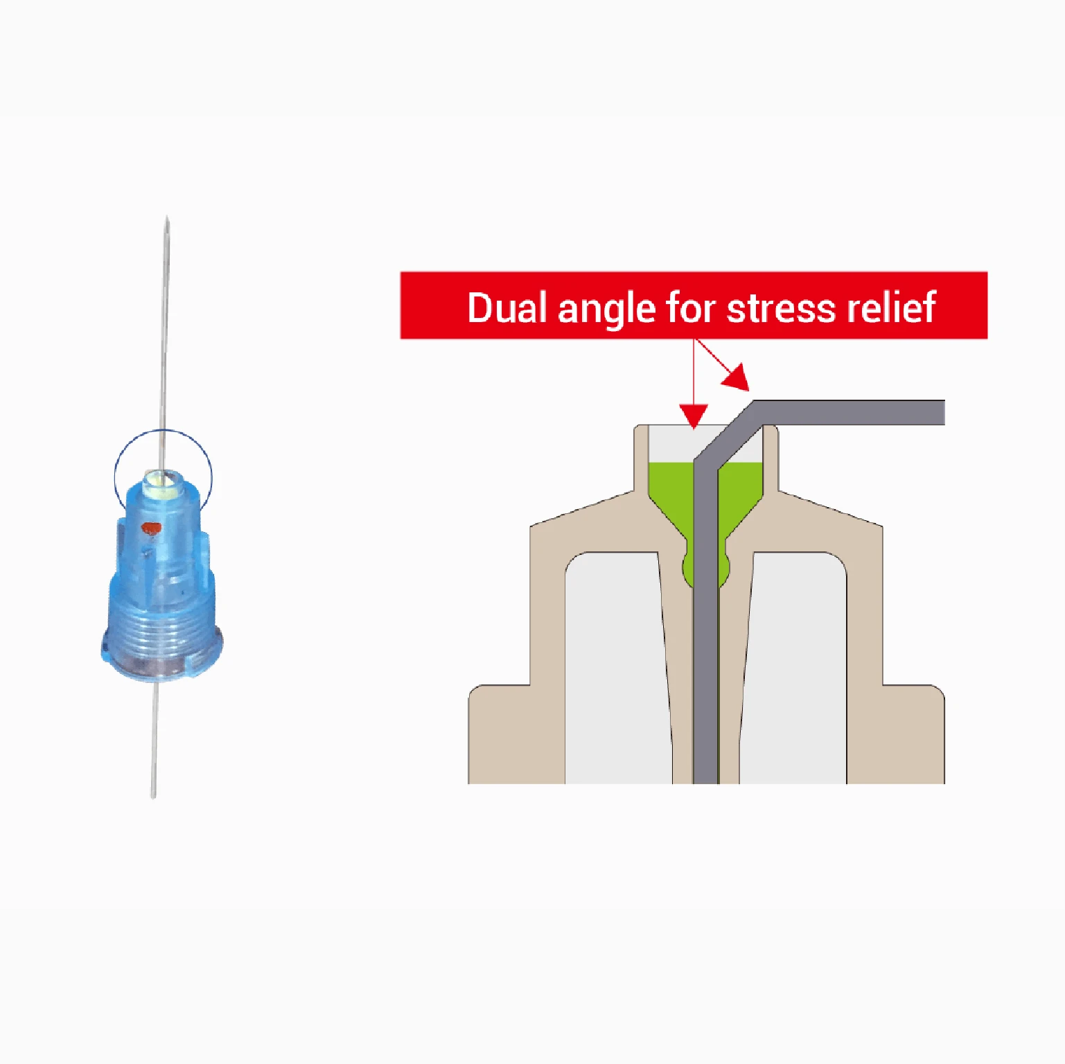 - Mặt vát dài hơn cho phép tiêm nhẹ nhàng, chính xác.